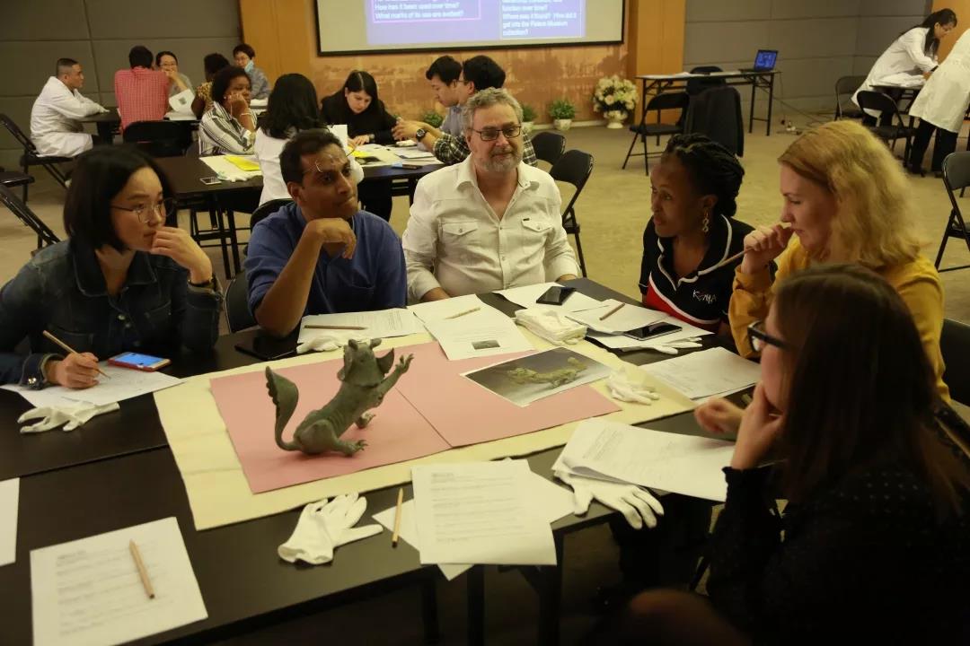 “藏品閱讀”一直是培訓班的經典課程之一,由加拿大專家克勞德·福貝爾授課指導。本期課程中選用的6件藏品均為福建博物院收藏的珍貴文物。學員們根據所選文物,分組閱讀藏品信息,研究該藏品的年代、材質、功能,進行小組討論,最后通過生動形象的形式為大家演繹藏品“故事”,讓不會說話的文物都活了起來。