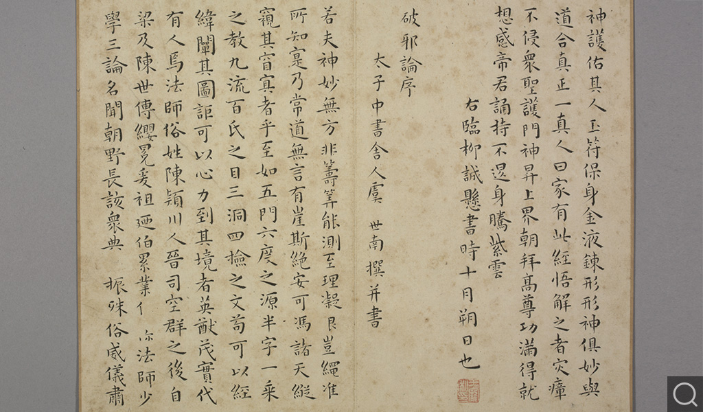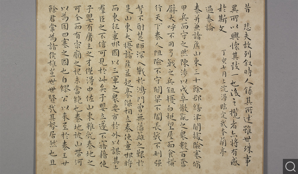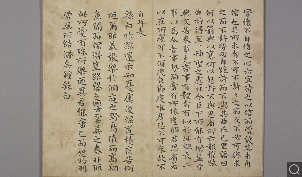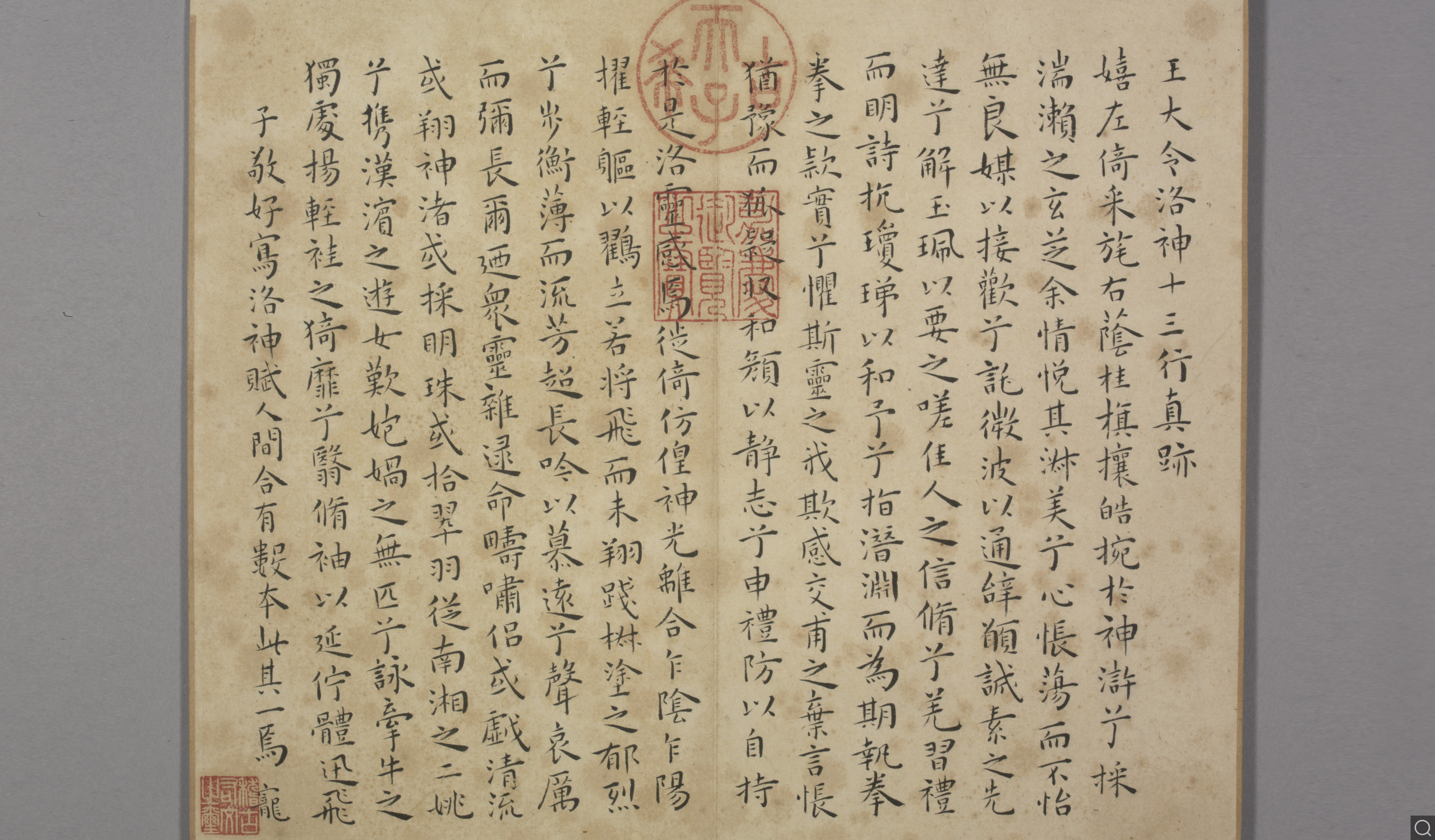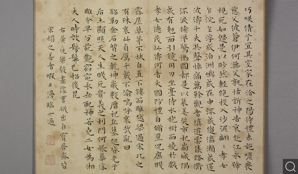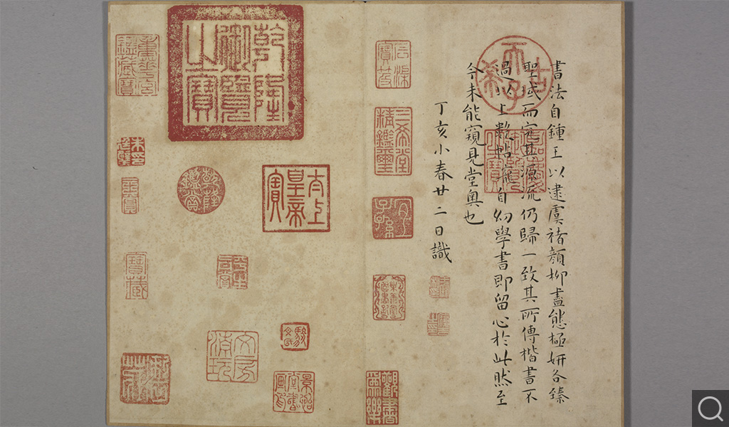 此冊為上下兩冊,按封面記錄所示藏于清內府長春書屋,清高宗弘歷分別于兩冊前大字書引首,并簽題云為神品。上冊收有王寵所臨魏鐘繇《薦季直表》《尚書宣示帖》《昨疏帖》,王羲之臨鐘繇《墓田丙舍帖》《辭世帖》《黃庭經》《樂毅論》《畫像贊》《孝女曹娥碑》,王獻之《洛神賦十三行》;下冊收有王寵所臨王羲之《官奴帖》《霜寒帖》,王獻之《乞假帖》《靜息帖》《姊性纏綿帖》《阮新婦帖》《定武蘭亭帖》,褚遂良《過秦論》、顏真卿《圣主得賢臣頌》,柳公權《常清靜經》,虞世南《破邪論》,顏真卿《麻姑仙壇記》、褚遂良《陰符經》。王寵的小楷應是“疏拓秀媚,亭亭天拔“,表現晉人風韻,結字疏拓蕭散,但在此冊中全無晉人風雅,拙鈍乏雅秀之感。此冊正是偽作王寵書法中最為典型和最常見的一種。王寵小楷書法的作偽,大多是節錄古人詩文,書寫工整呆板,習氣較重,缺少書法藝術中靈活安排,變化生動的氣韻。由于結字乏變,字字似一,使得王寵真跡書法中以散、澀、韻寫拙,巧拙互用,奕奕動人的特點全無,偽作中“婉婉暖暖,視之不足“,也就是說筆力綿軟無力,少力缺筋,圓鈍無骨,俗拙之態倍現,而古雅之氣全無。其次,下冊臨帖后有王寵自識一段,云:“書法自鐘王以逮虞、褚、顏、柳,盡態極妍,各臻圣域。而究其源流,仍歸一致。其所傳楷書不過以上數帖,寵自幼學書,即留心于此,然至今未能窺見堂奧也。丁亥小春廿二日識。“既為同時期所臨寫的作品,各家書風應有所變化,但兩冊中各帖形態風格相似,不似大家所為。劉九庵先生曾對王寵的此類偽作有如下說法:“所見偽王寵書,大都臨帖或錄書古人詩文,不僅書法面目類同,且多署丁亥年款。“并認為此類偽作“出于一人之手。此人大約為王寵同時或稍晚時人,專做王寵偽書“。
