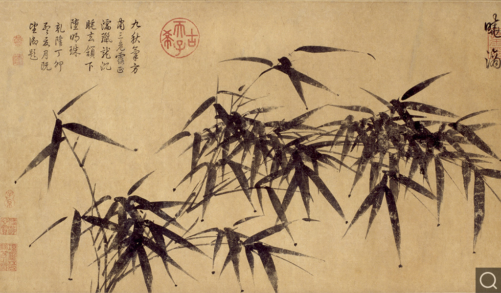 此圖畫法上承元人而自出新意,顧盼生姿,以墨之干濕濃淡體現出竹叢承露帶雨的姿態,用筆圓勁,格調清雅。對于王紱這樣一位宦途坎坷、九死一生的文人而言,竹早已成為其生命與精神的組成部分,他曾在《題竹》詩中寫道:“林下蕭然拔俗姿,難隨花柳競芳時。秋深風雨邀誰聽,歲晚冰霜只自知……”正是其內心世界的寫照。本幅末自識:“王紱為士瞻?!北痉许椩辍⒐⒄阎壹扒迩 ⒓螒c、宣統內府鑒賞印。