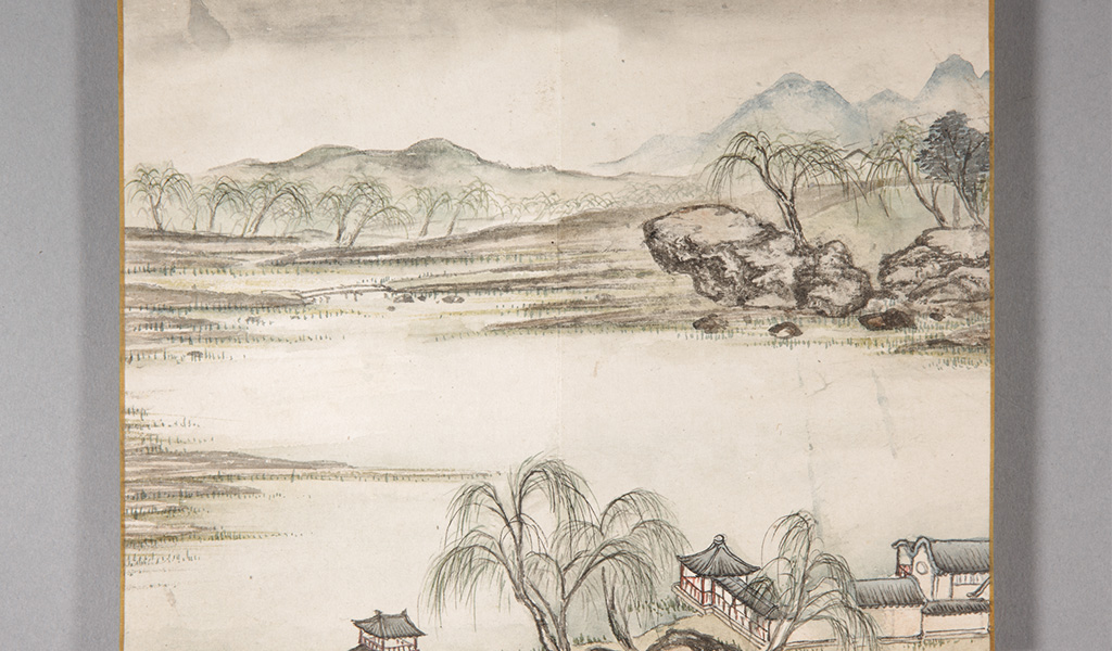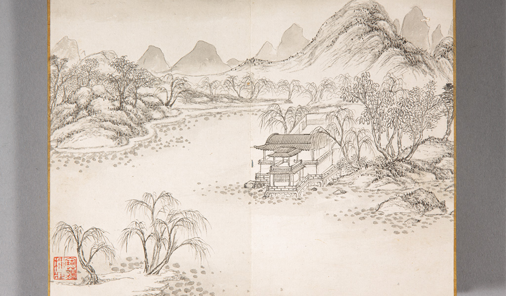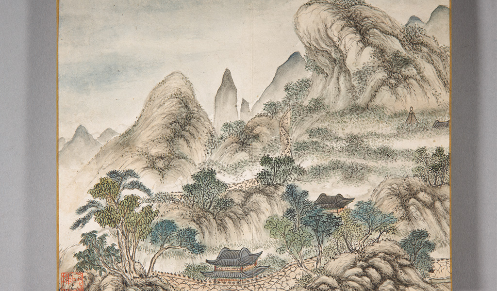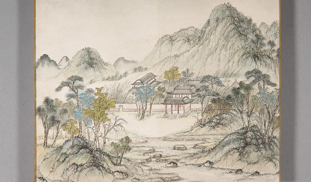據此冊之首所錄乾隆帝詩序云,康熙帝曾親選山莊三十六景,一一題詩,并命人繪圖。乾隆帝事事步趨乃祖,因于“幾政之余,登臨攬結”,再選三十六景,并各題七絕一首,是為《再題避暑山莊三十六景詩》。勵宗萬以恭楷謄錄其詩,并各繪一圖,進呈御覽,故冊尾款署“臣勵宗萬敬錄、恭繪”。此件共四冊,書、畫各三十六開。宗萬名高爵重,雖擅丹青,向不多作。此四冊山水,精心用意,諸法雜陳,為其生平絕詣。且能忠實描繪皇家園林昔日勝景,具有重要的史料性質,研究價值更非一般的山水作品可比。