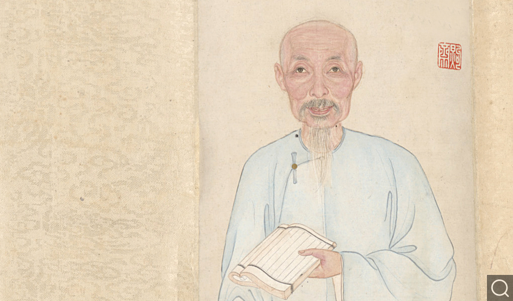 本幅圖中英和身著便裝,手持書卷,泰然而立。所繪人物表情安詳,衣紋簡練,著重刻畫出英和博學之文人氣質。根據畫幅右上款題,可知此圖作于道光十八年(一八三八)春,英和時年六十八歲。