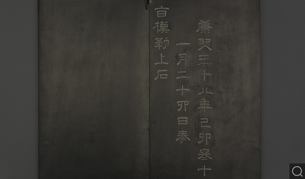 是冊共八冊,為清康熙三十一年至三十八年(一六九二 — 一六九九)摹刻。該帖第一、二冊收順治皇帝書。第三至八冊收康熙皇帝書。貯藏于懋勤殿。編輯《石渠寶笈續編》時,宮廷才將所藏碑帖歸為法帖,辟為專門目錄,即“三朝宸翰法帖”“列朝舊拓法帖”和“本朝摹刻法帖”,予以收入?!叭泛卜ㄌ?,收入摹刻順治、康熙、雍正三朝皇帝的御筆書帖,如《懋勤殿法帖》《淵鑒齋御筆法帖》《四宜堂法帖》等。