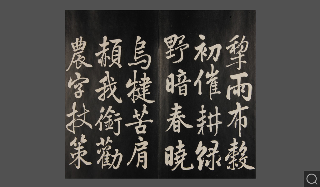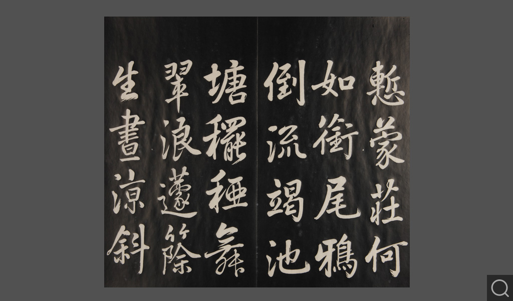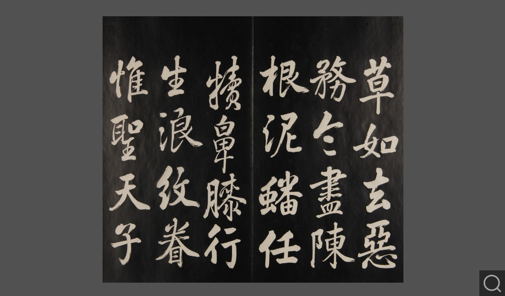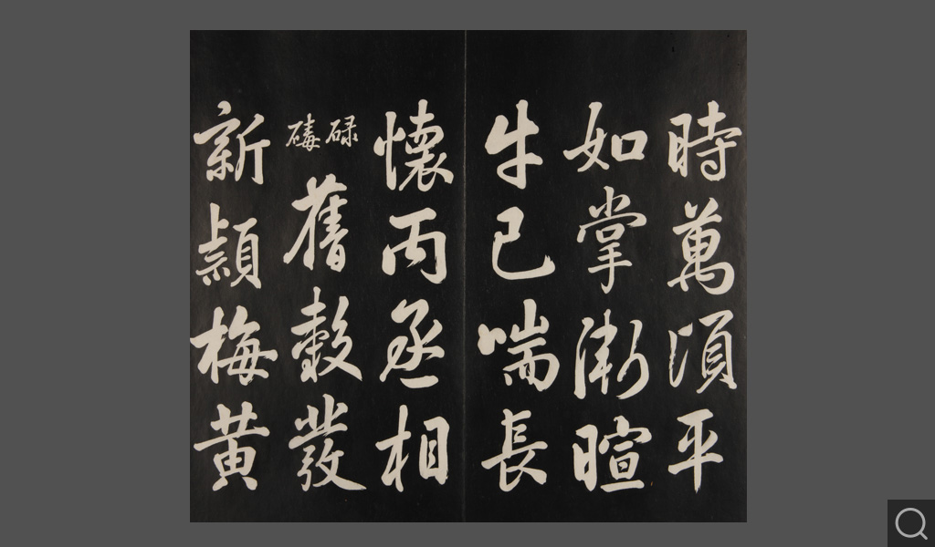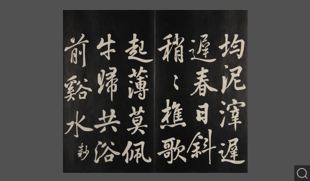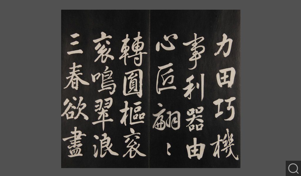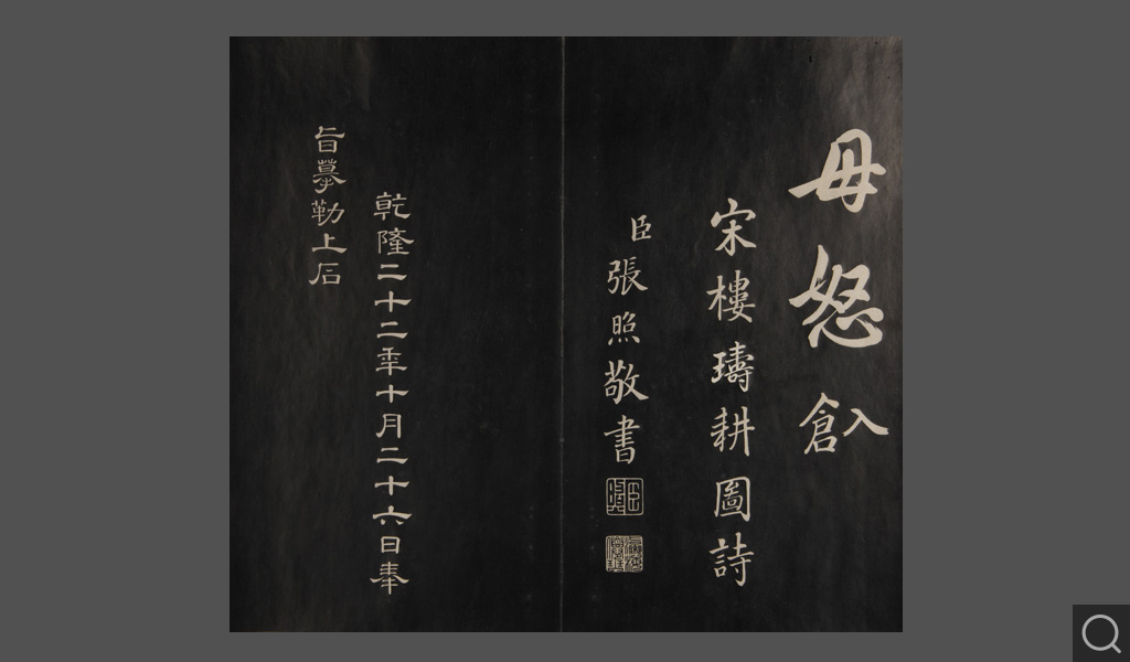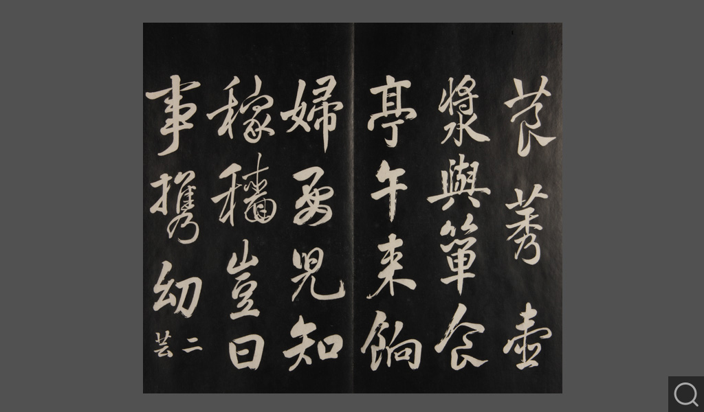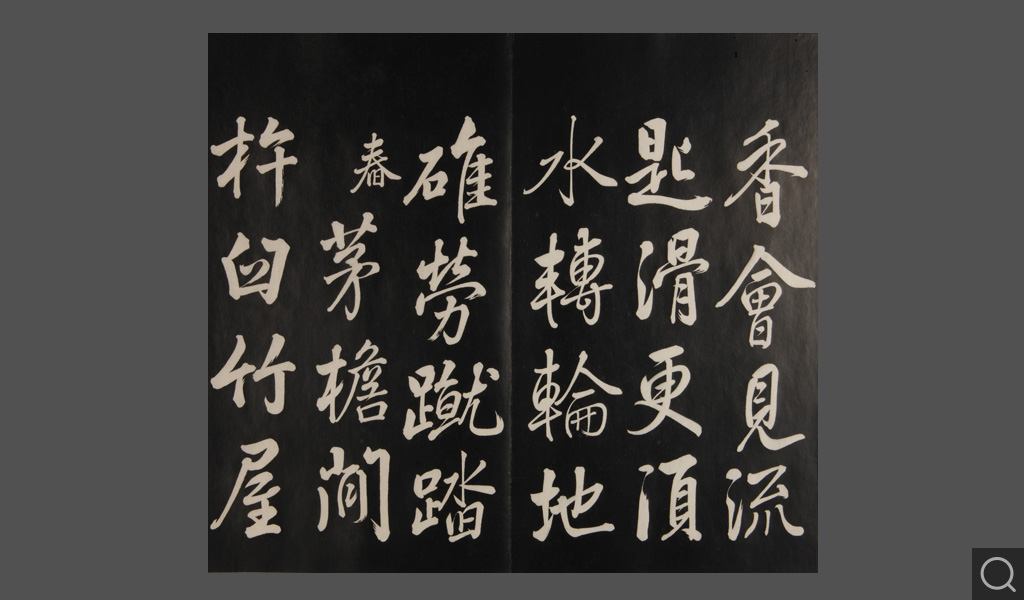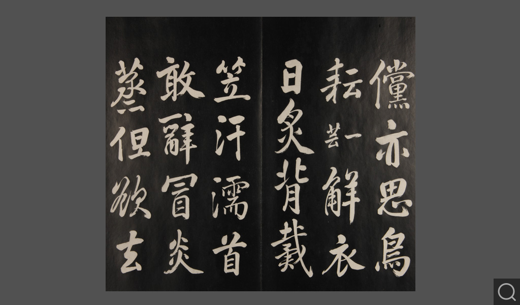 是件為清乾隆二十二年(一七五七)摹刻,帖收大臣張照書。該帖第一、二、三冊收張照恭書御制詩文,第四、五、六、七、八冊收張照臨晉、唐、宋、元、明歷代名家書,第九、十冊收張照自書詩文。