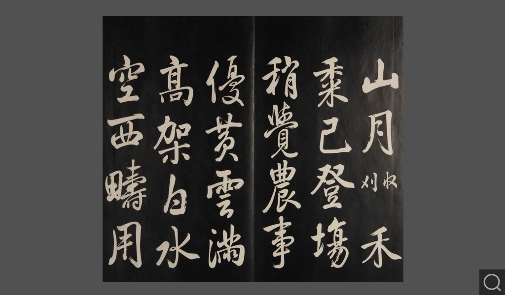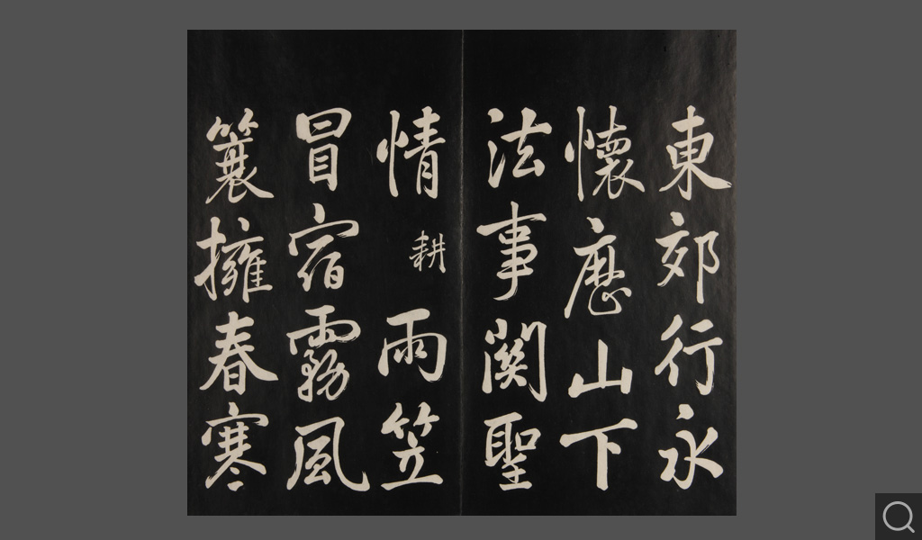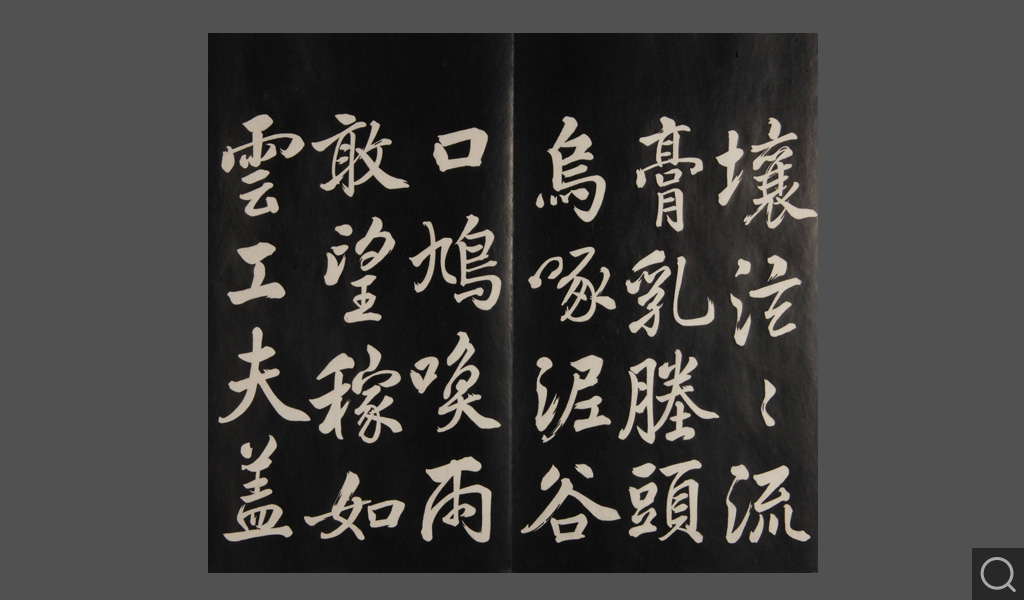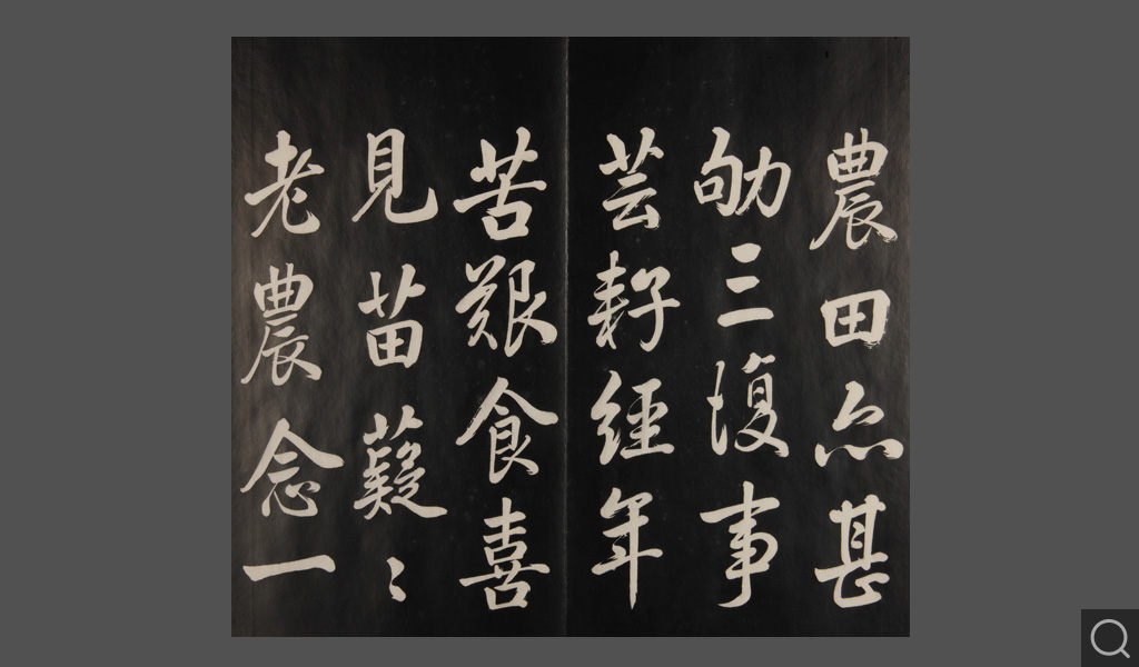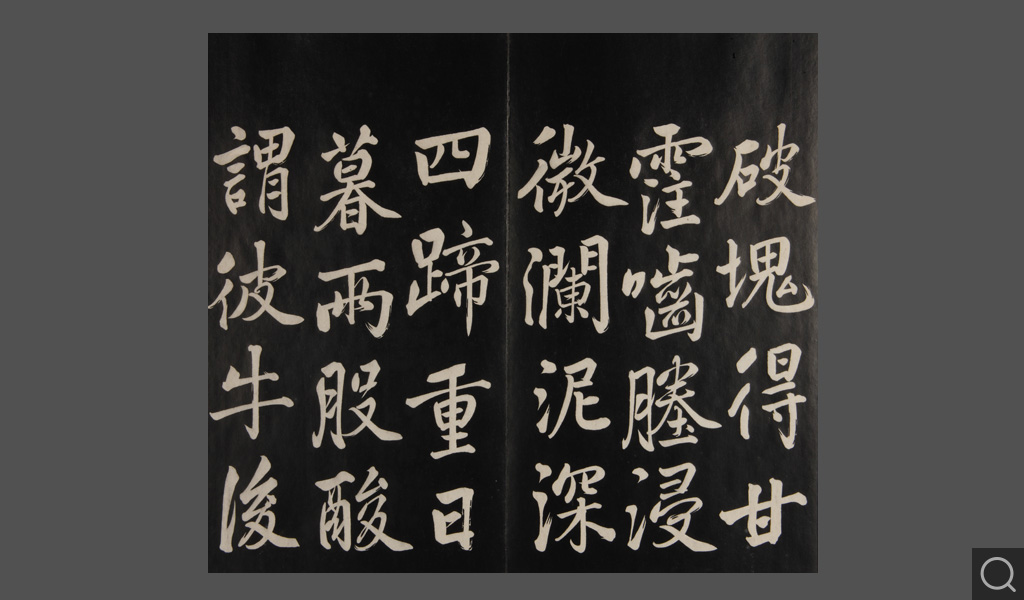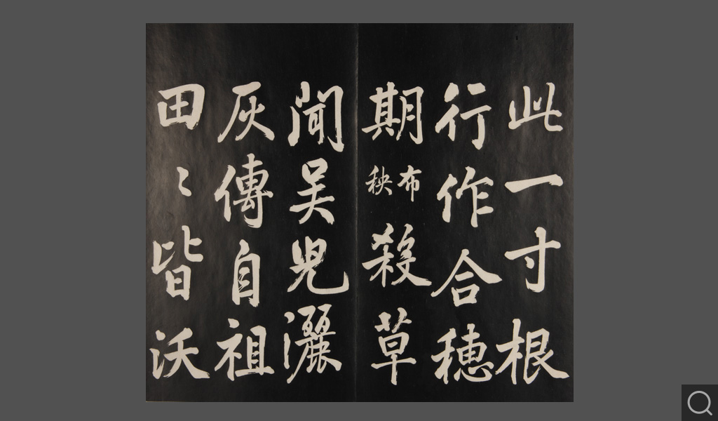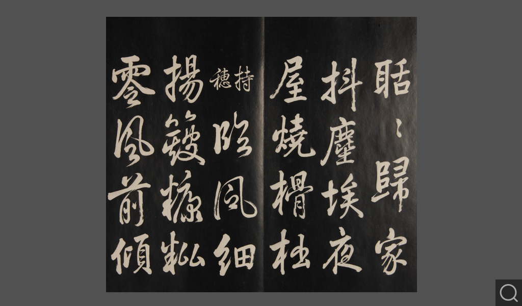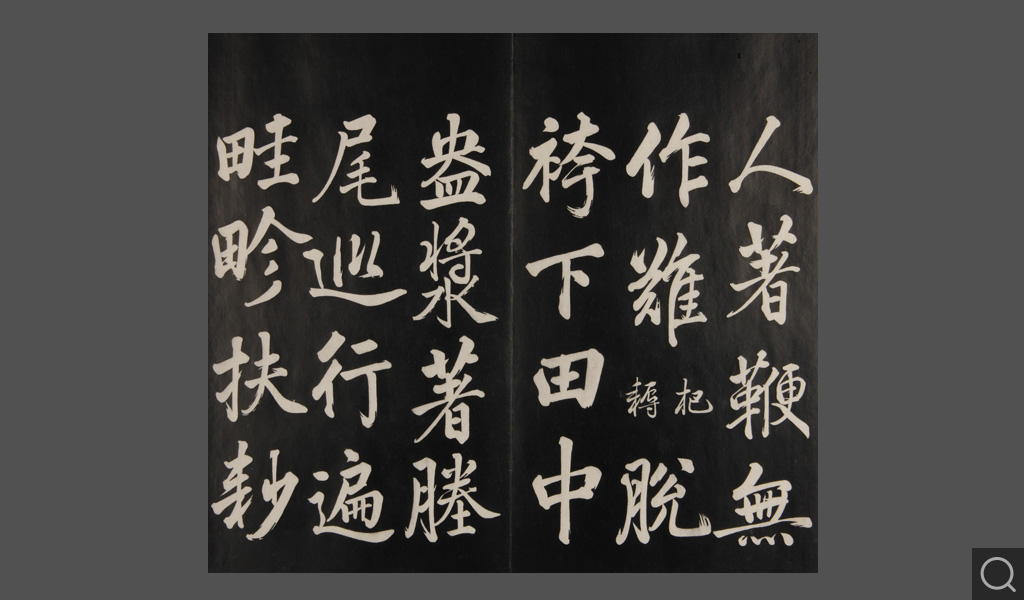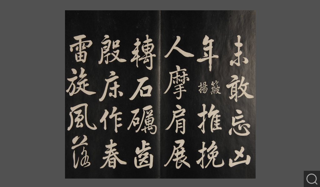 是件為清乾隆二十二年(一七五七)摹刻,帖收大臣張照書。該帖第一、二、三冊收張照恭書御制詩文,第四、五、六、七、八冊收張照臨晉、唐、宋、元、明歷代名家書,第九、十冊收張照自書詩文。