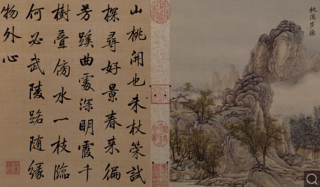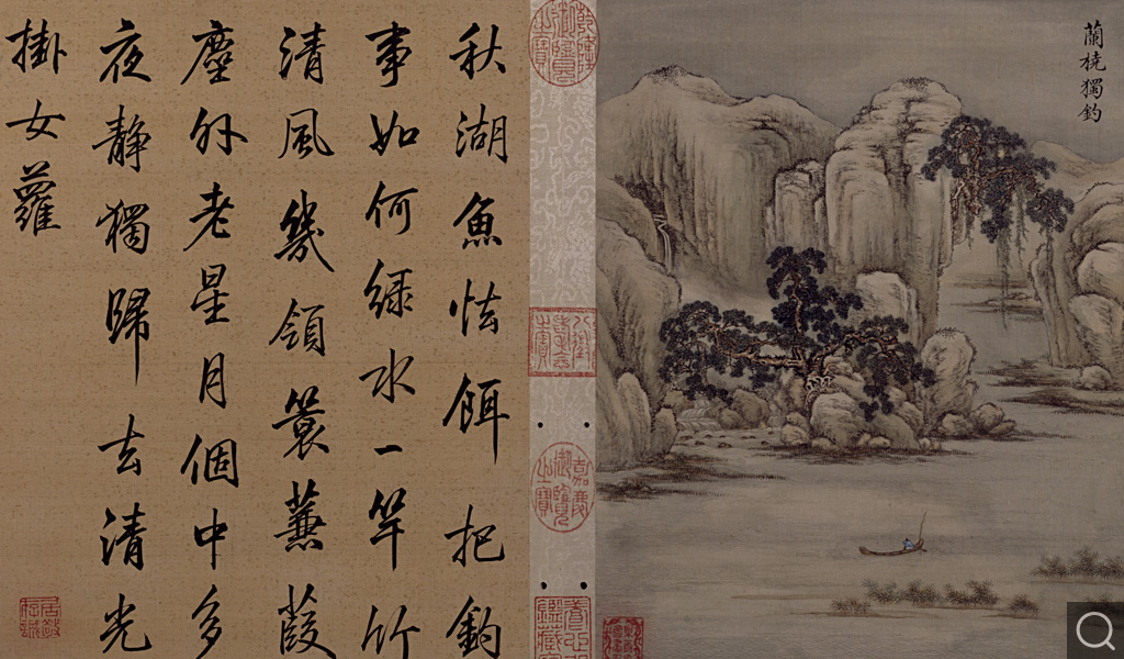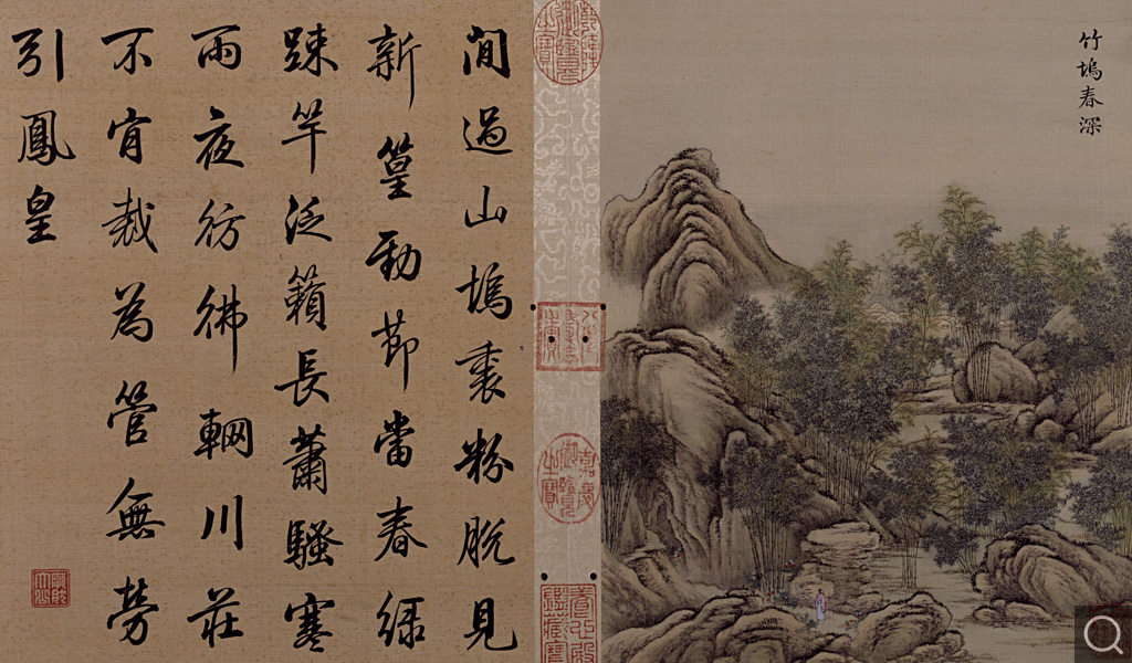是件與鄒一桂冊同為《繪事羅珍》冊中的第七冊。十八冊中唐岱共有三冊,第八為《唐岱山水冊》(十二對幅),第九為《唐岱仿各家山水》(十二對幅),此件同藏故宮博物院。