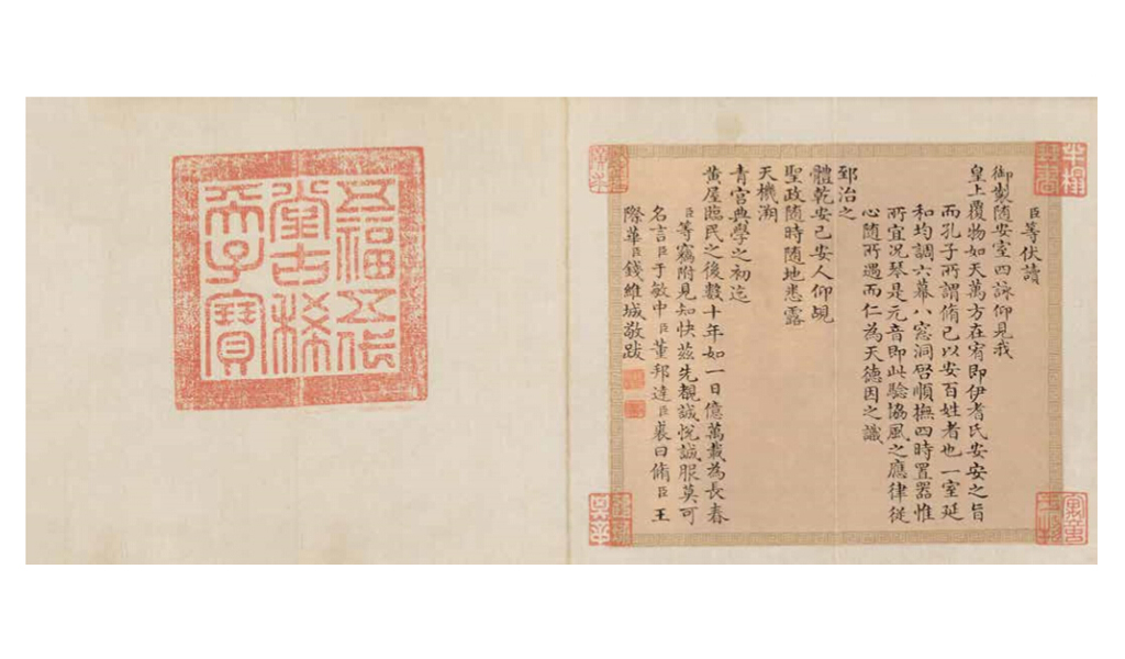 隨安室是弘歷使用頻率最高的齋堂號之一,本為其登基前所居重華宮之書齋名,登基后在內廷重華宮、養心殿、養性殿、樂壽堂以及西苑瀛臺、清漪園、圓明園、避暑山莊等別苑和行宮中有多處以此為名者。弘歷曾多次題詠隨安室,據其所言,隨安最初“取其隨所遇而安之義”,登基后,隨安之含義也有變化,“四海之廣,兆民之眾,無不欲其隨時隨地而安”,而內廷別苑以此為名者眾多,乃是有“觸目警心,亦識其安之艱致”之意。