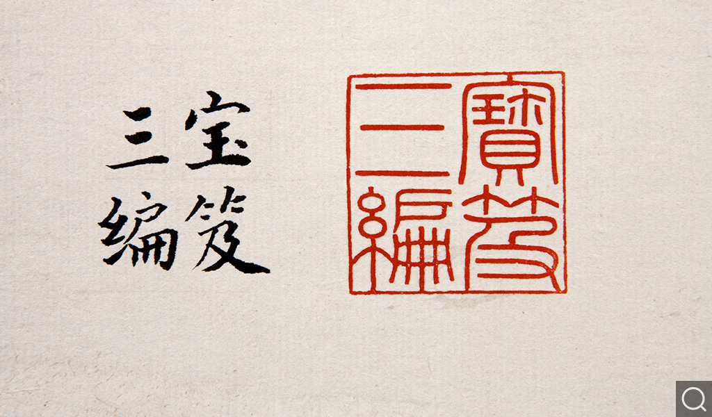 青玉蹲龍紐,陽文篆書。此璽是《石渠寶笈三編》所著錄的內(nèi)府收藏書畫作品上必鈐的寶璽。《石渠寶笈三編》凡例規(guī)定:“恭遇列圣宸翰、皇上御書則用『寶笈三編﹄ ,或曰『寶笈所藏﹄凡二璽。古今臣工書畫則用『嘉慶御覽之寶﹄『嘉慶鑒賞﹄『三希堂精鑒璽﹄『宜子孫﹄『石渠寶笈﹄凡五璽,又加鈐『寶笈三編﹄以別于續(xù)編。”此亦為鑒別清宮書畫收藏標(biāo)志性寶璽。